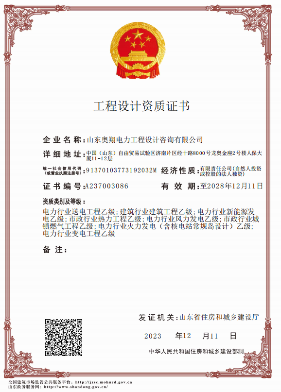 年終歲首話發展|奧翔電力工程設計咨詢公司順利通過設計資質5年有效期延續
