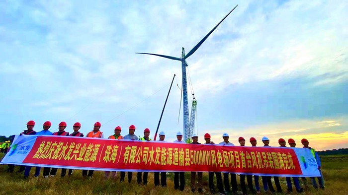 水發能源通榆縣500MW風電場首臺風機順利吊裝完成 項目建設全面進入安裝施工階段