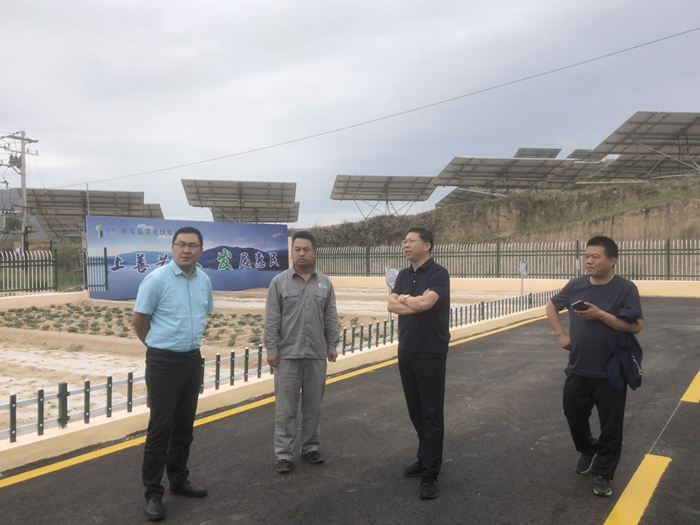 8月11日,甘肅省臨洮縣縣委常委、副縣長劉鵬,臨洮縣商務局局長劉學林一行到訪水發能源臨洮25MW光伏電站,進行現場檢查及調研,水發能源集團黨委委員、副總經理周廣彥現場陪同。