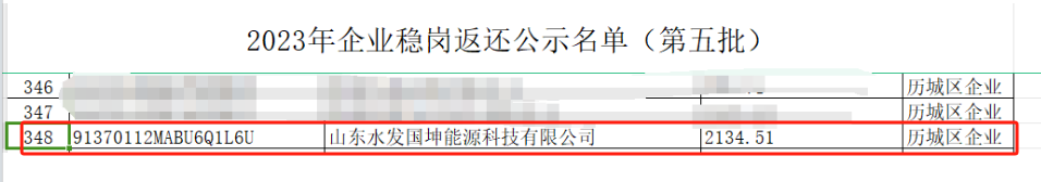 水發(fā)國坤公司入選濟南市歷城區(qū)“2023年企業(yè)穩(wěn)崗返還公示名單”